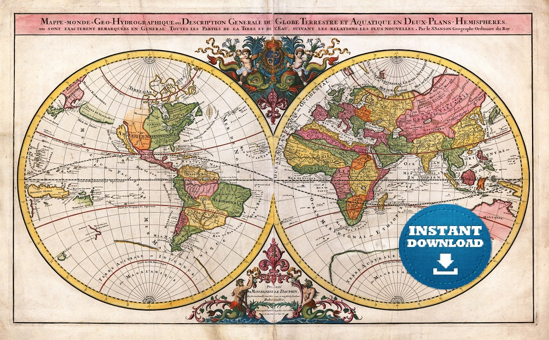 • Digital Printable Vintage Colorful Detailed Bohemian WORLD MAP.